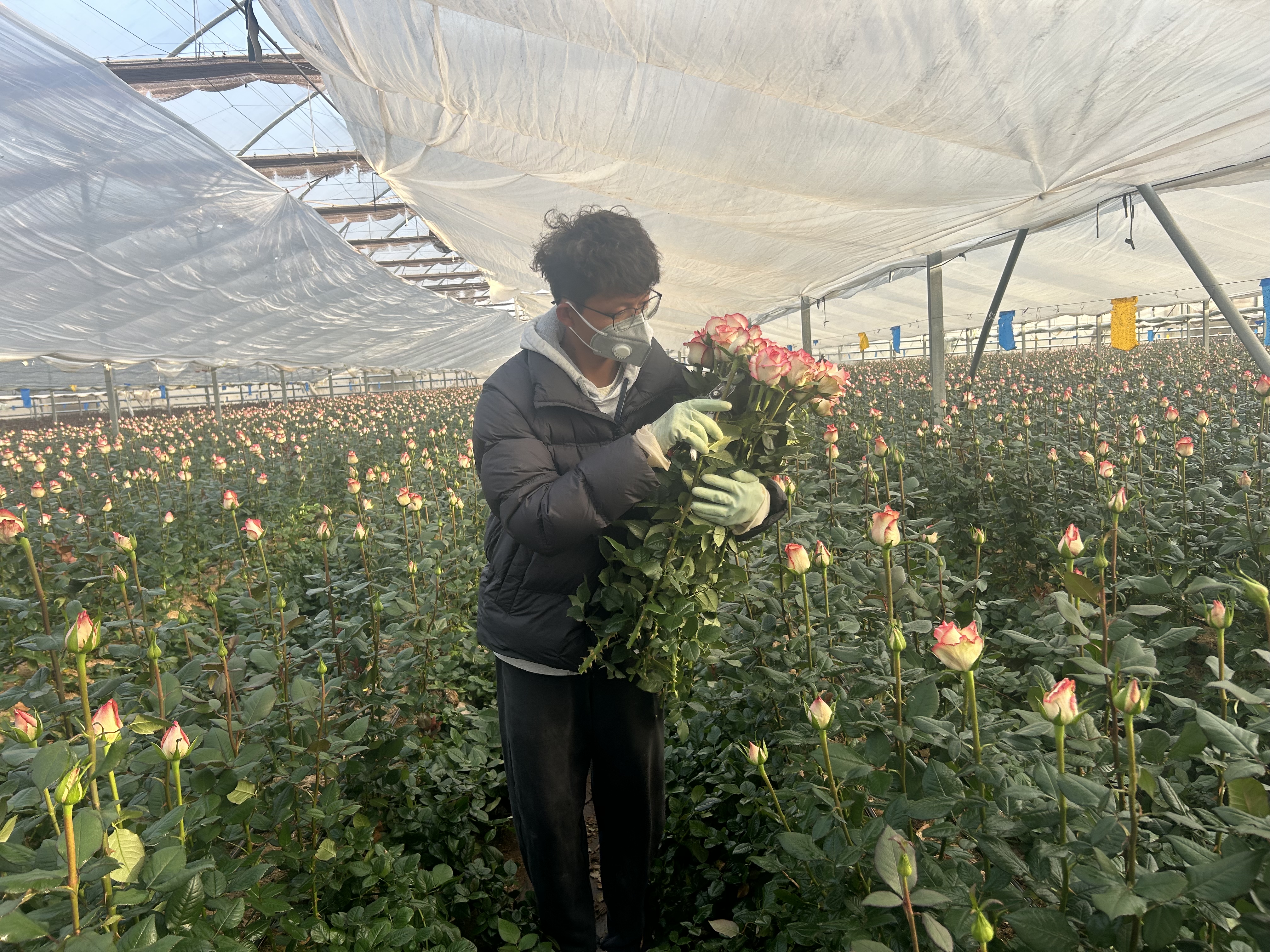 2021年姚安基地刚建立时,基地的管理人员在植保方面的经验比较欠缺,在病虫害防治方面走了许多弯路。为了尽快弄清楚鲜切月季的各种病虫害情况,朱立雄一头扎进了玫瑰花地里,每天与花为伍,早上6点就到地里,一直待到深夜,观察研究不同病虫害的特性,然后有针对性调整防治策略。