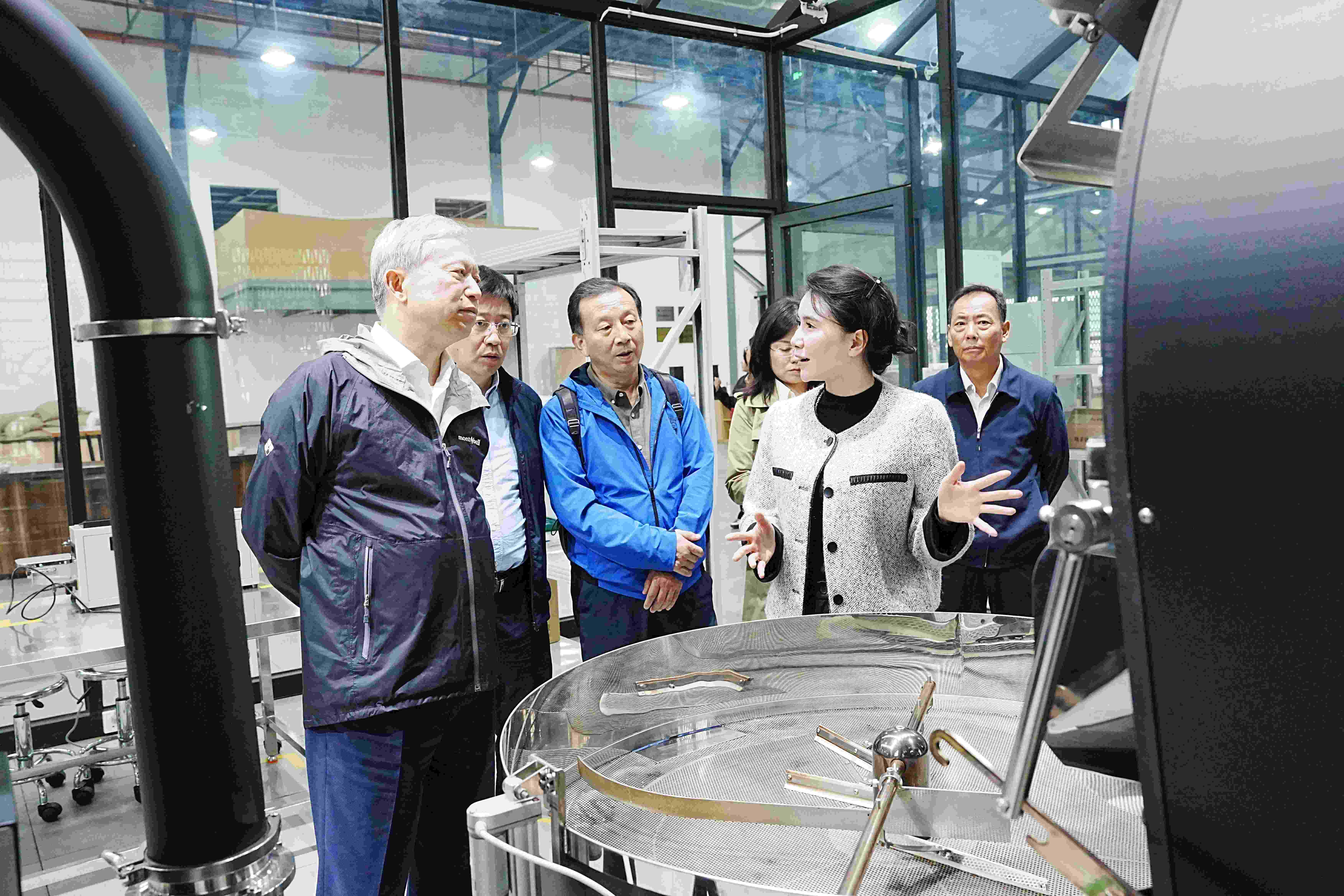 沈文祖一行先后参观了咖啡焙炒车间、咖啡文化馆、柔性生产线等生产环节。详细了解了企业发展历程、种植基地布局、核心生产工艺、全品类产品体系及市场运营成效等相关情况,对咖啡厂公司在品质管控、技术创新及产业辐射带动方面的探索与实践给予充分肯定。